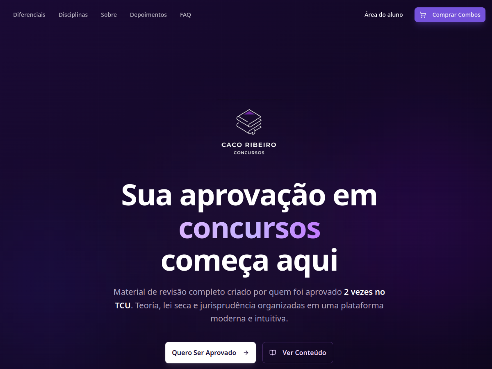 Plataforma digital de estudo para concursos públicos. Material de revisão completo com legislação integrada, referências cruzadas e atualizações automáticas.