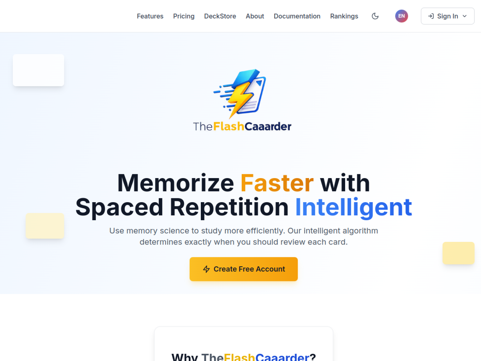 Plataforma inteligente de flashcards com algoritmo SM-2 de repetição espaçada. Estude para concursos, certificações e provas com eficiência máxima.