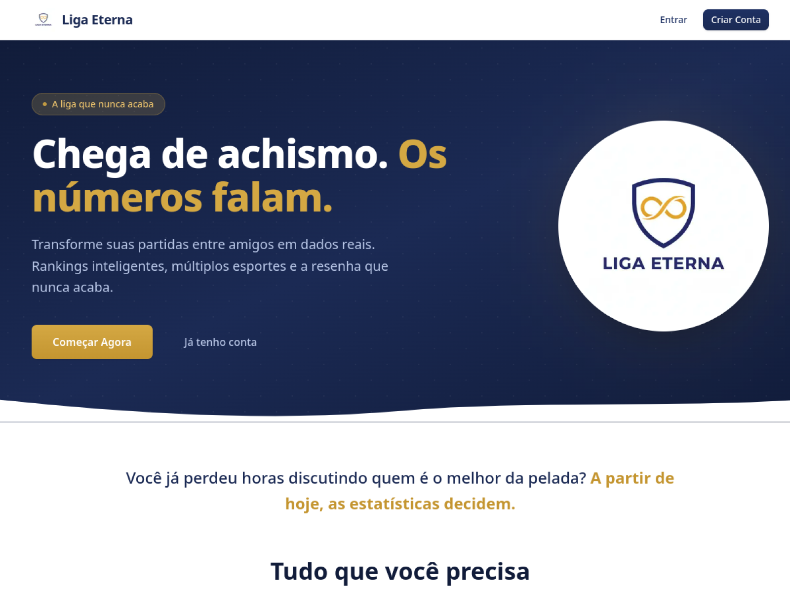 Plataforma de rankings esportivos que transforma partidas entre amigos em dados reais. Sistema Glicko-2, múltiplos esportes e estatísticas em tempo real.